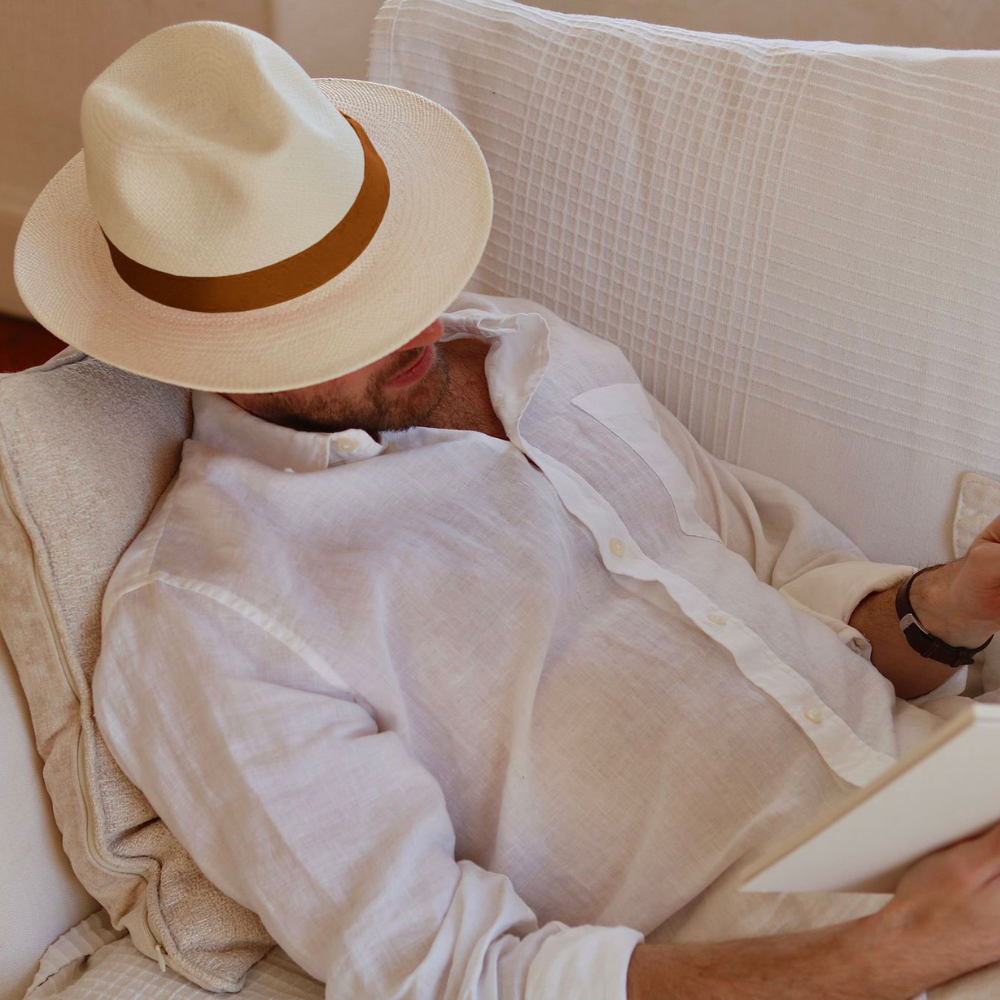 Before storing your Men's Panama hat, you must ensure that the hat is very clean and dry. If it has a little dust, a light brushing with a soft brush or lint roller will work just fine. Store your Men's Panama hat away from direct light, in a place specific to it and where it will not be exposed to dust, crushed or deformed such as in a hat box, a storage box, on a shelf, on a hat stand…