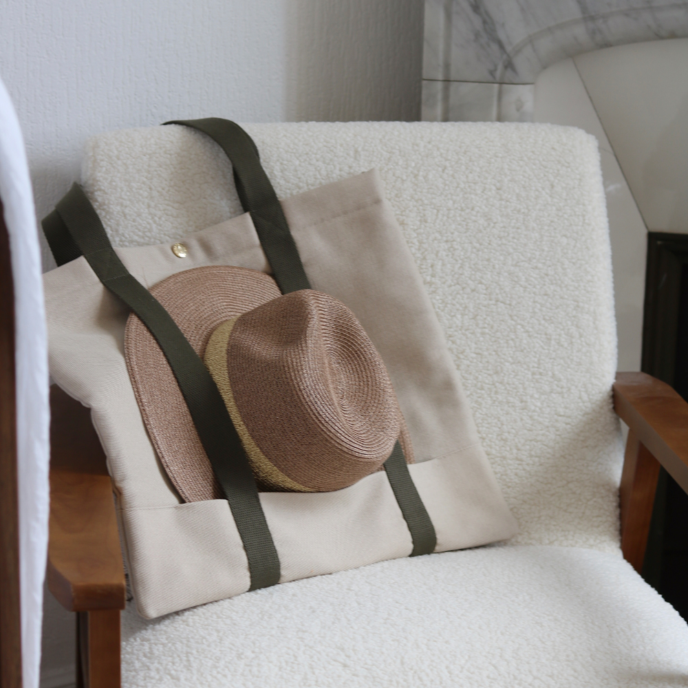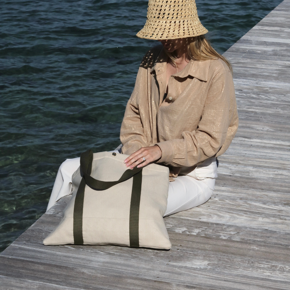 The Parakalo bag is made in France, with a thick, ultra-resistant cotton canvas. The handles are very comfortable cotton straps. It closes with 3 snap buttons at the top of the bag, it is fully lined and has an inside pocket closed with a zipper. It is the perfect companion for the city as well as for the beach, it enhances our outfits and simplifies our days. It is simply indispensable .