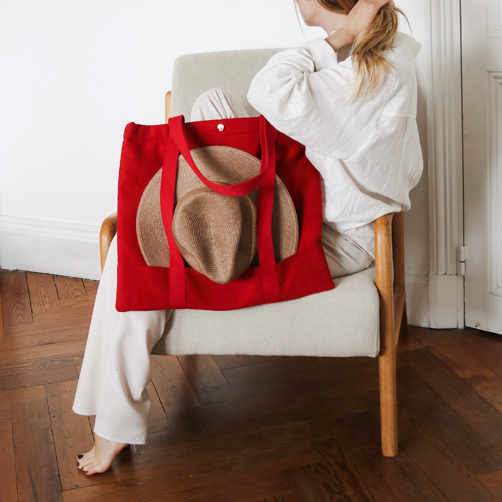 The Parakalo bag is made in France, with a thick, ultra-resistant cotton canvas. The handles are very comfortable cotton straps. It closes with 3 snap buttons at the top of the bag, it is fully lined and has an inside pocket closed with a zipper. It is the perfect companion for the city as well as for the beach, it enhances our outfits and simplifies our days. It is simply indispensable .