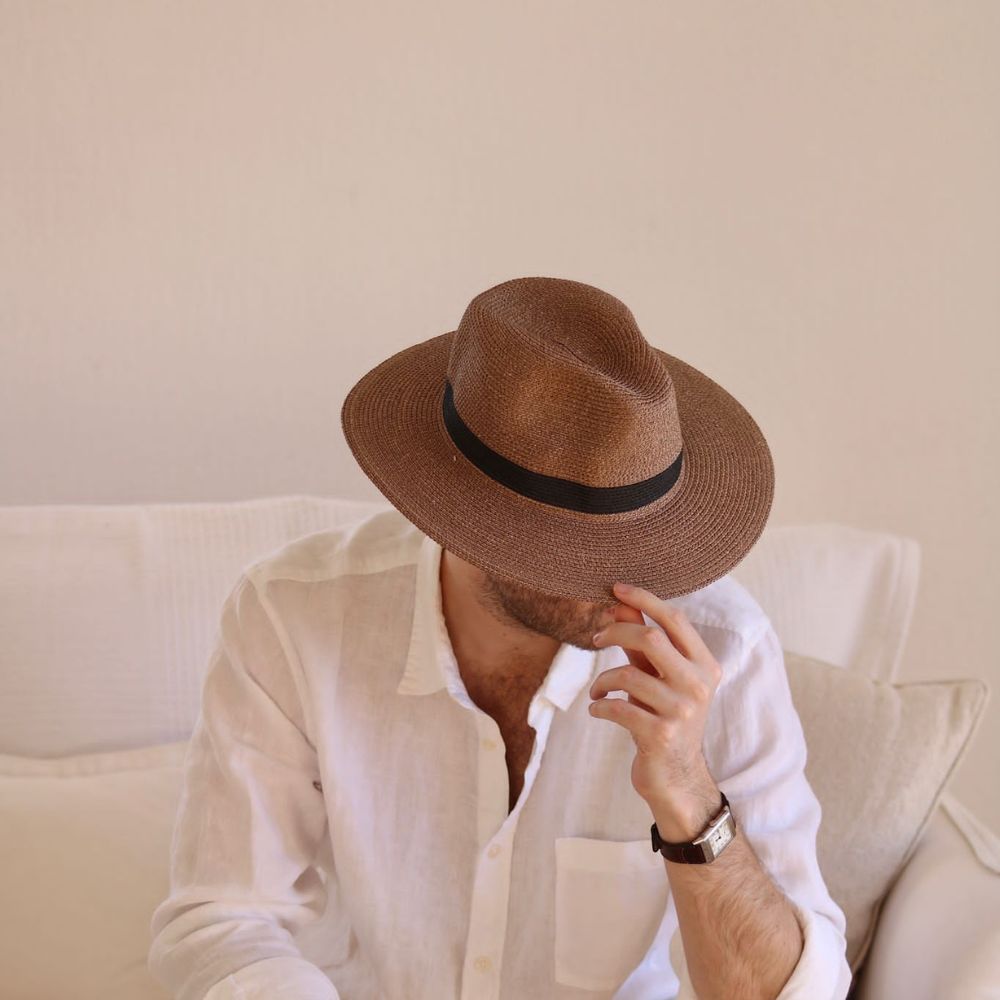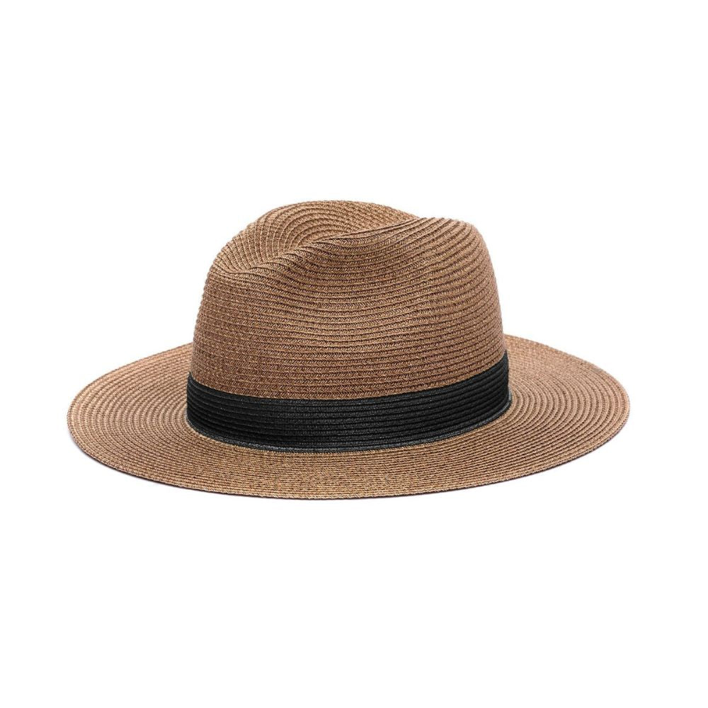 La base du chapeau Portofino est un doux marron, la couleur parfaite pour mettre en valeur toutes les carnations de peau. Il est réalisé avec une tresse en paille deux couleurs différentes : une marron pour la base et une colorée pour le ruban noir. Le ruban noir étant intégré au chapeau, il ne bougera pas contrairement aux rubans en tissu qui peuvent se froisser ou s'abîmer.