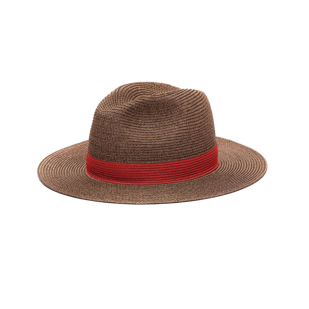 La base du chapeau Portofino est un doux marron, la couleur parfaite pour mettre en valeur toutes les carnations de peau. Il est réalisé avec une tresse en paille deux couleurs différentes : une marron pour la base et une colorée pour le ruban rouge. Le ruban rouge étant intégré au chapeau, il ne bougera pas contrairement aux rubans en tissu qui peuvent se froisser ou s'abîmer.