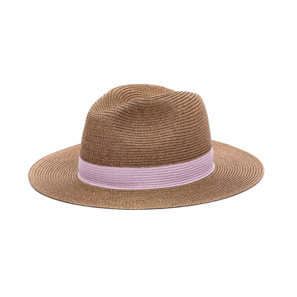 La base du chapeau Portofino est un doux marron, la couleur parfaite pour mettre en valeur toutes les carnations de peau Il est réalisé avec une tresse en paille deux couleurs différentes: une marron pour la base et une colorée pour le ruban rose pâle. Le ruban rose pâle étant intégré au chapeau, il ne bougera pas contrairement aux rubans en tissu qui peuvent se froisser ou s'abîmer.