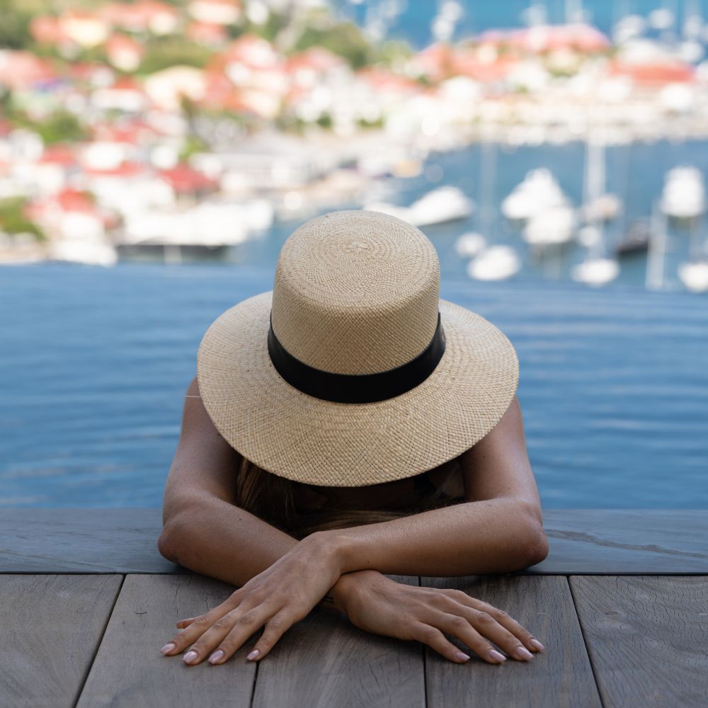Le Panama est fabriqué à la main en Équateur avec une paille de toquilla provenant d'une espèce de palmier locale. En 2012, l'Unesco a inscrit le tissage traditionnel du Panama au patrimoine culturel immatériel de l'humanité. Au tout début, la fonction principale du panama était de protéger les gens du soleil, puis il est devenu un chapeau à la mode (qui protège toujours du soleil). Le chapeau Riviera est certifié avec un indice de protection solaire UPF40 qui bloque plus de 97,5% des UV.