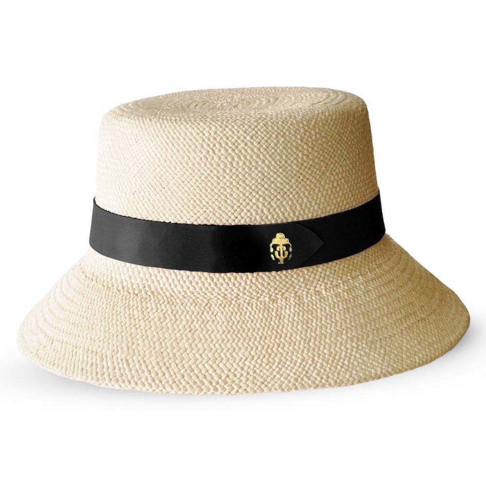 Le Riviera est le chapeau parfait aussi bien pour la plage que pour la ville. C’est un vrai panama élégamment conçu avec une forme cloche rare et raffinée. Confectionné en paille panama lisse de couleur naturelle, il est doté d’un ruban de cuir contrastant.