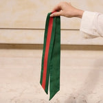 Pour préserver la tenue de votre Twilou rayé rouge et vert, conservez-le à plat et dénoué lorsqu’il n’est pas utilisé afin d’éviter la formation de plis permanents. La soie étant une fibre délicate, évitez tout contact avec l’eau, l’humidité ou les agents chimiques (parfums, cosmétiques, produits ménagers) susceptibles d’altérer les couleurs ou la structure du tissu.
